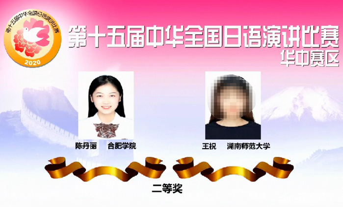 据悉,中华全国日语演讲大赛由中国教育国际交流协会、日本经济新闻社、中日学术交流中心共同主办,教育部高等学校外国语言文学类专业教学指导委员会日语专业教学指导分委员会、中国日语教学研究会协办。预赛分八大赛区在中国举办,总决赛在日本东京举办,为中国日语演讲界最高赛事。今年的第十五届比赛克服疫情影响成功举办,来自河南、安徽、湖北、湖南四省的30所高校共计30名选手入围华中赛区比赛。外国语学院自受到大赛组委会邀请后高度重视,由日语专业演讲竞赛指导团队鲍德裕、绪方贤吾两位老师共同指导。在此项赛事上,我校已连续七届取得安徽省最好成绩,展现了学校多年来坚持应用型、国际化人才培养的丰硕成果。