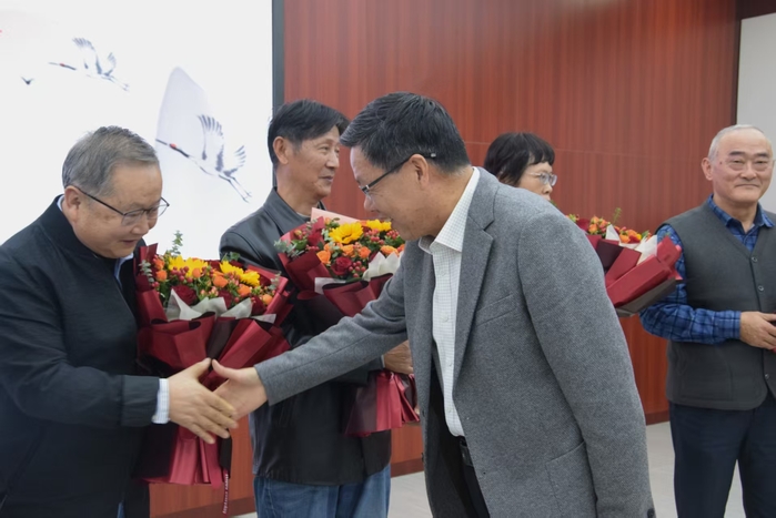 10月29日上午,学校举办2025年老同志校情通报会暨重阳节集体祝寿会。党委书记邬平川、党委副书记周飞与70岁、80岁整寿的9位老同志代表、离退休各支部书记及部分支委欢聚一堂,共庆重阳佳节,共话学校发展。会议由机关党委书记、离退休工作部部长缪群道主持。