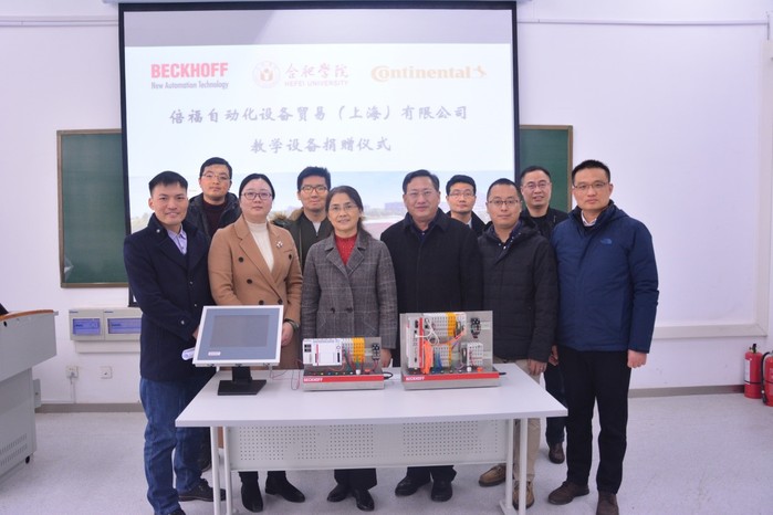 11月27日下午,倍福自动化设备贸易(上海)有限公司教学设备捐赠仪式在我校40栋会议室举行。副校长、安徽中德教育合作基金会(以下简称基金会)理事长陈秀出席捐赠仪式,倍福自动化设备贸易(上海)有限公司代表张洪彪、葛长响,大陆马牌公司代表汪鑫,校计划财务处处长、基金会秘书长何世昆以及中德教育合作示范基地(基金)管理办公室主任刘金平等参加了捐赠仪式。仪式由先进制造工程学院院长吕刚主持。