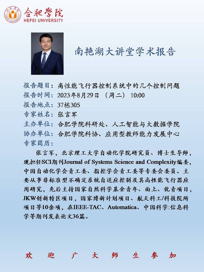 【讲座预告】高性能飞行器控制系统中的几个控制问题