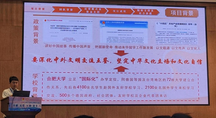 据悉,第七届安徽省青年志愿服务项目大赛经过前期初筛,在715个推报项目中共入围182个,分5个组别13个赛道进行路演答辩,在项目大赛类中共产生金奖40个,银奖50个,铜奖60个。此次工作自3月份启动以来,校团委高度重视、精心组织,先后邀请专家组通过书面和路演答辩相结合的方式进行评审,针对项目建设、运行管理、汇报答辩等方面开展深入培训与指导。此次获奖项目《“中国节 同心结”——基于“一带一路”背景下中国节庆文化推广》是我校品牌志愿服务活动之一,项目基于一带一路背景和我校国际化办学定位,针对“讲好中国故事、传播中国声音”开展中华传统节庆文化推广和志愿服务,旨在中外交融中书写跨文化交流的崭新篇章,为共建一带一路贡献青春力量。