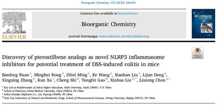 inhibitors  for potential treatment of DSS-induced colitis in mice》的学术论文。该研究采用基于配体的药物设计策略,利用预研得到的苗头化合物对其进行结构优化,最终发现了高活性、高选择性的NLPR3抑制剂D22,对于后续抗炎活性的研究提供了重要的依据。